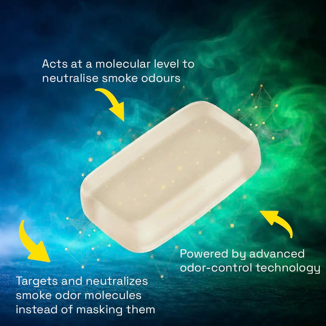 - Targets and breaks down smoke odour molecules instead of masking them.